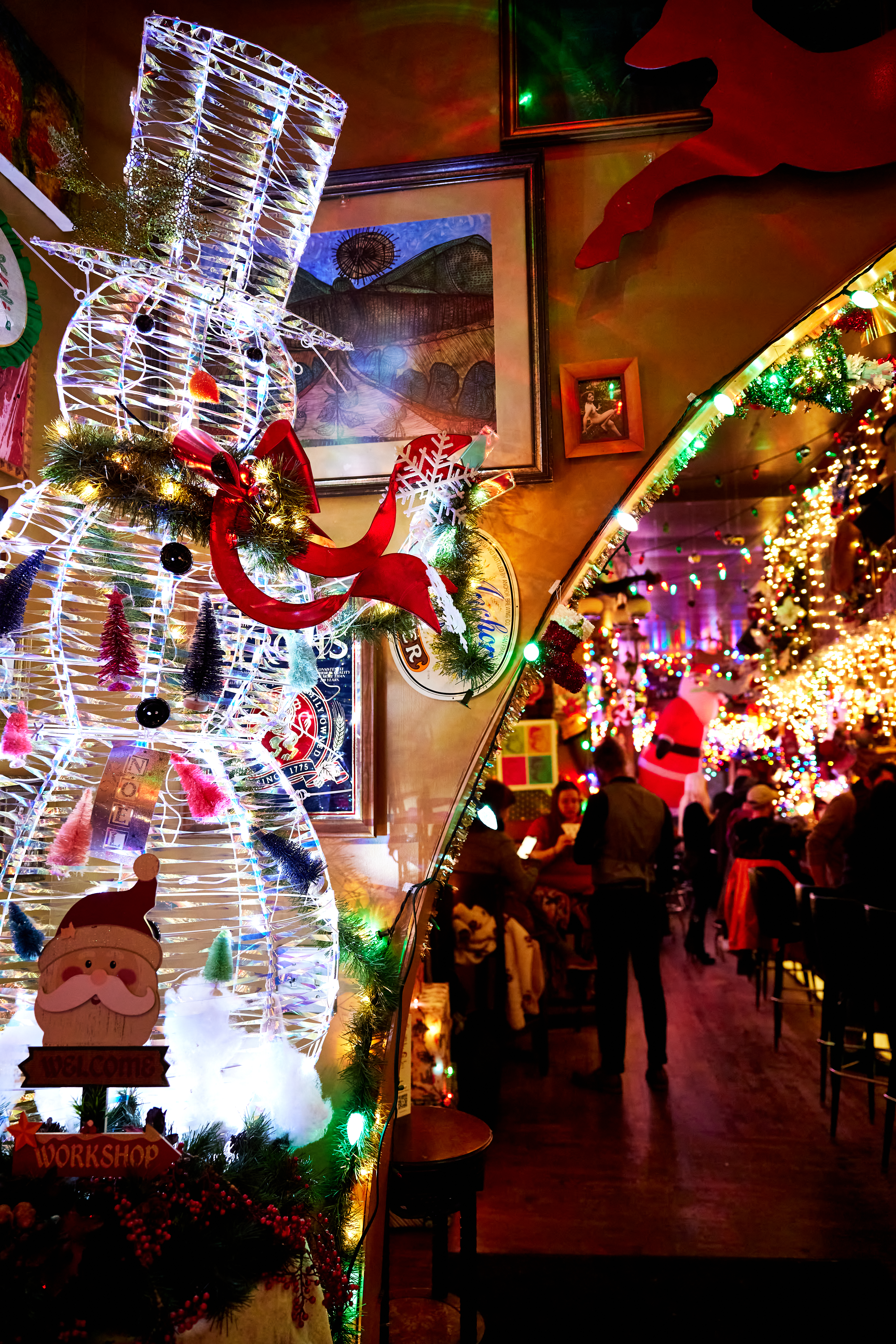 Tin Widow feels a little like stumbling into a 1970s relative’s rec room—if that relative also happened to be a spirits collector. The walls are stacked with vintage portraits, eclectic iconography, thrift-store finds, and more than a few owls keeping watch. There’s a long, candle-lit bar, cocktail tables along the wall, and a snug lounge space toward the back where conversations stretch out.