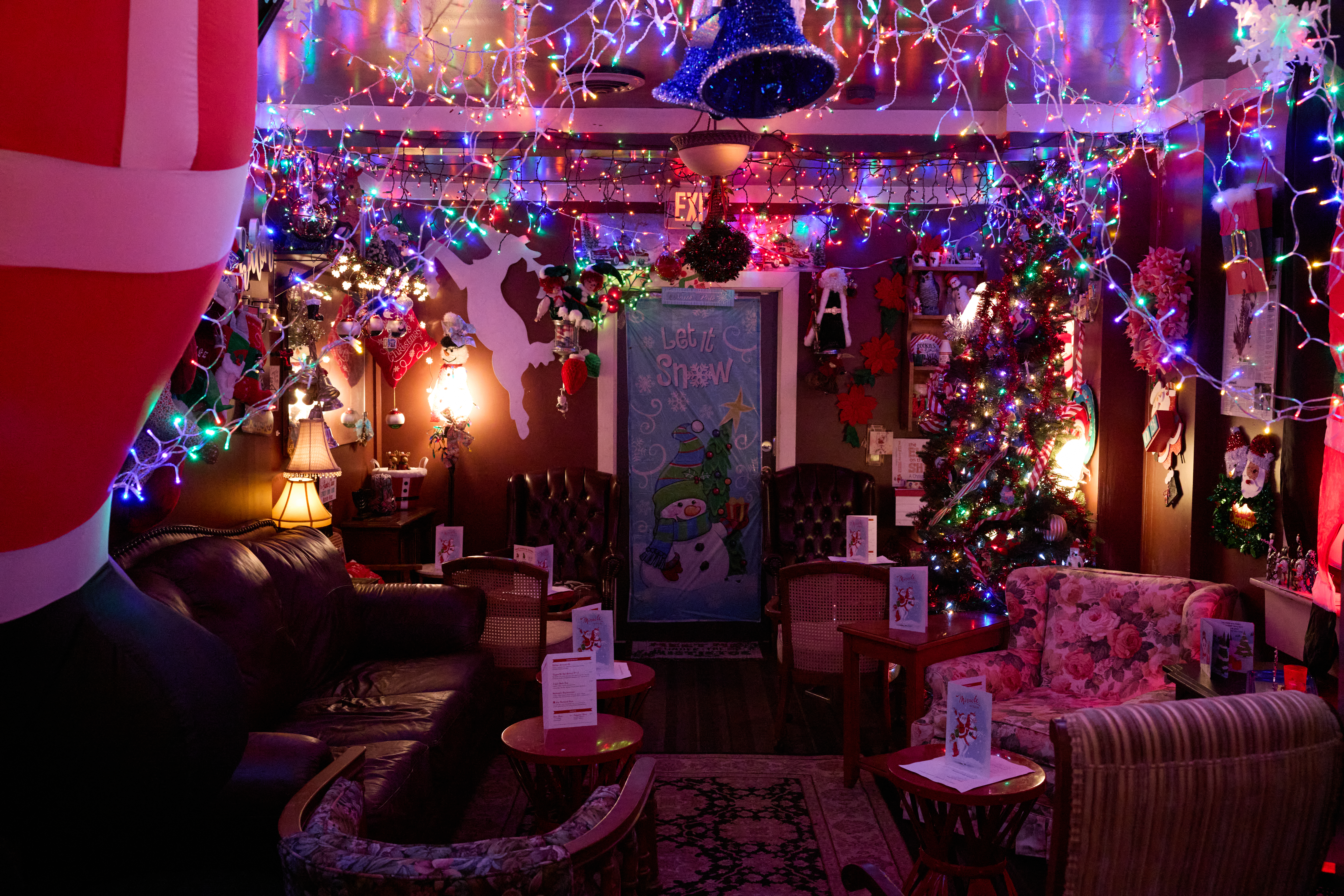 Tin Widow feels a little like stumbling into a 1970s relative’s rec room—if that relative also happened to be a spirits collector. The walls are stacked with vintage portraits, eclectic iconography, thrift-store finds, and more than a few owls keeping watch. There’s a long, candle-lit bar, cocktail tables along the wall, and a snug lounge space toward the back where conversations stretch out.